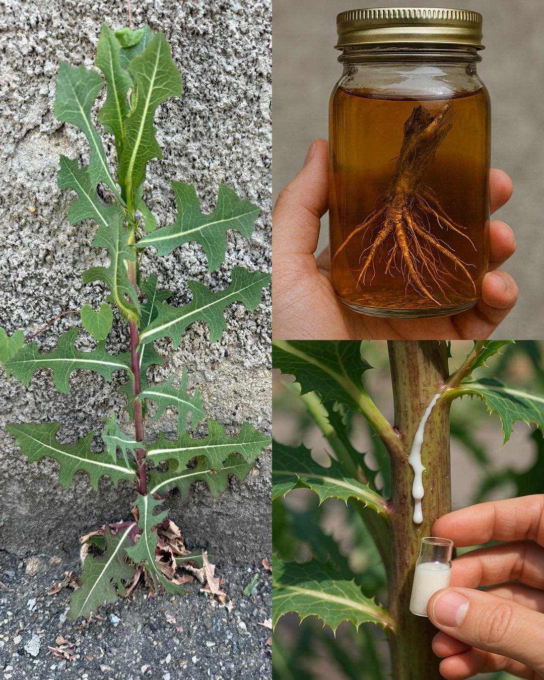 1. Collect mature wild lettuce sap (the white milk that oozes from broken stems).