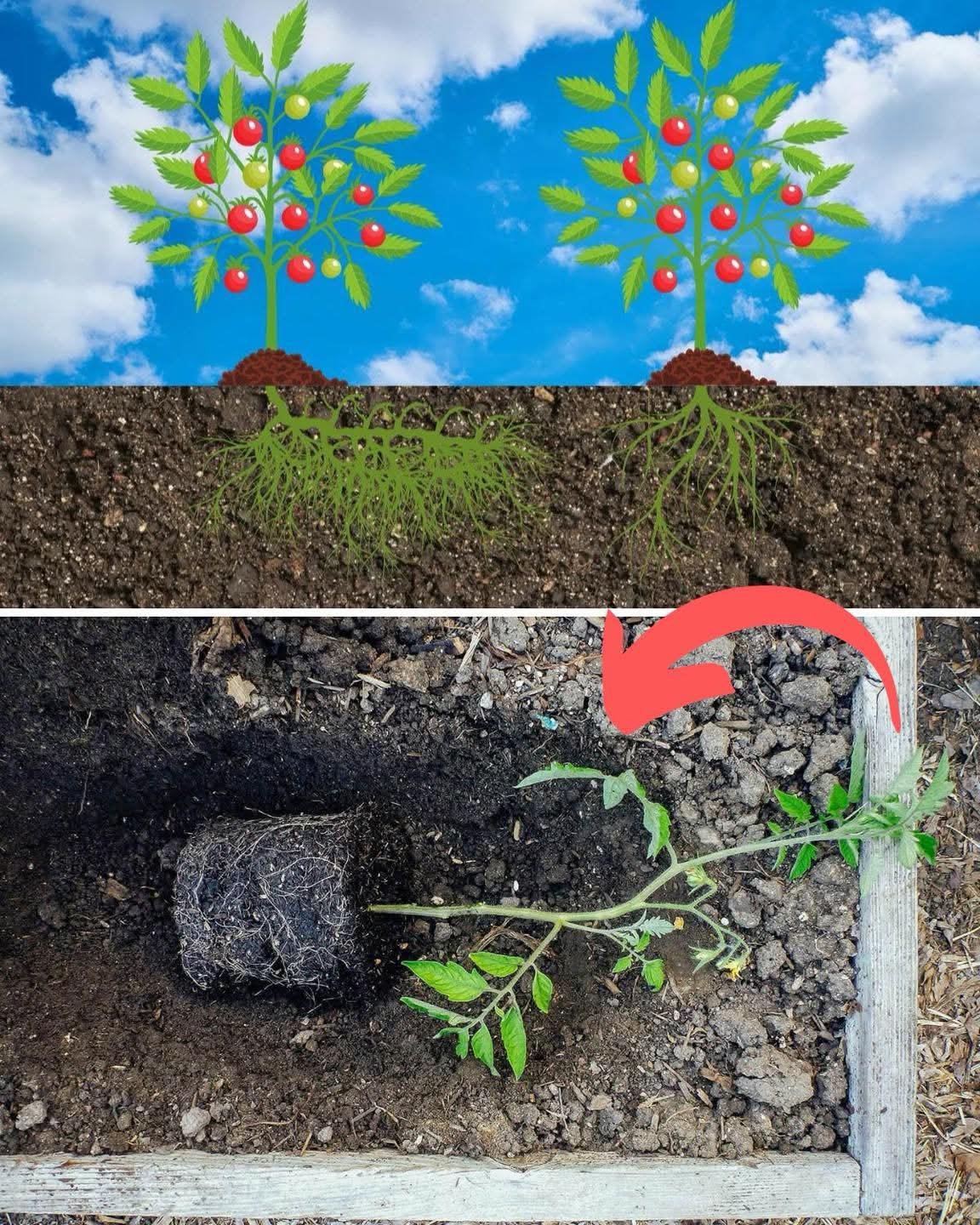 Planting tomato seedlings sideways may seem unconventional, but it’s a tried-and-true method backed by science and gardening experts.