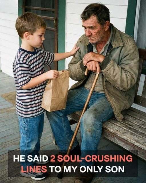 My seven-year-old son kept leaving his lunch on our grumpy neighbor’s porch… until one morning, the old man opened the door holding a faded photograph that made me freeze.