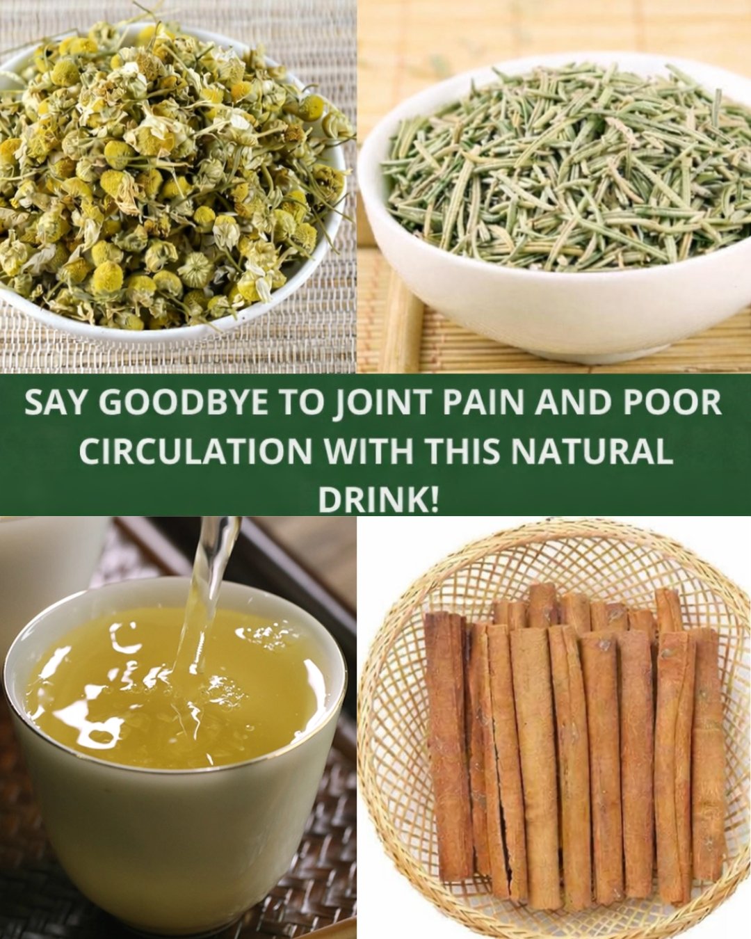 This natural infusion with chamomile, rosemary, cinnamon, and herbal tea is a simple, comforting, and economical traditional remedy that can help relieve joint discomfort, support circulation, and promote a more balanced well-being.