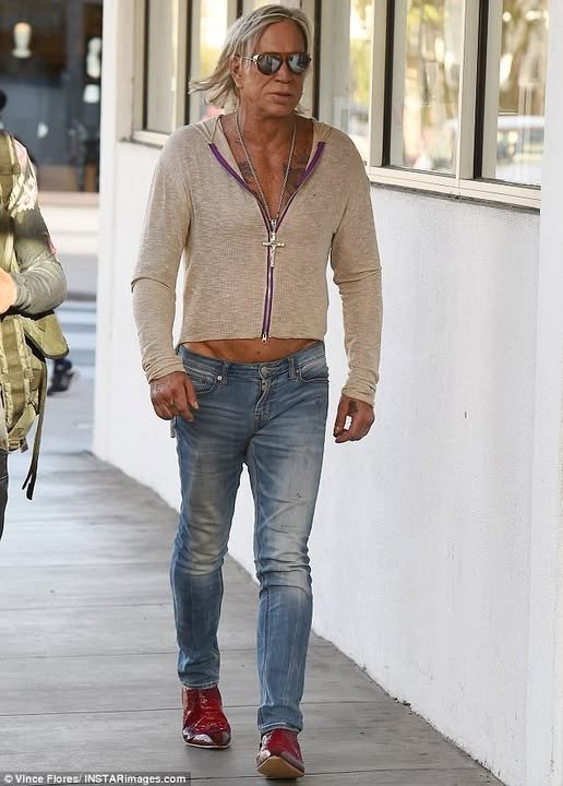 Rather than reading as costume, the scene felt like performance—two figures comfortable being noticed, unbothered by interpretation. Rourke, who rose to prominence in the 1980s through roles that emphasized intensity and vulnerability, has never been known for understatement. His public appearances often reflect a willingness to challenge expectations, whether stylistic, cultural, or personal.