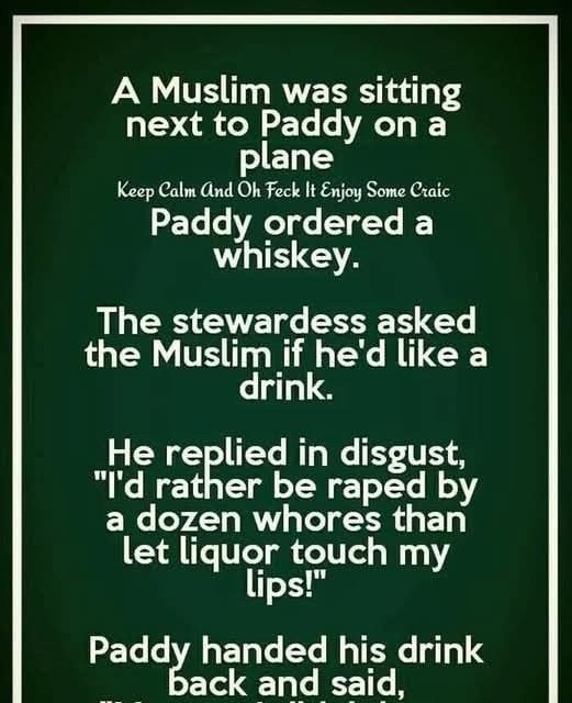 A Muslim was sitting next to Paddy on a plane.