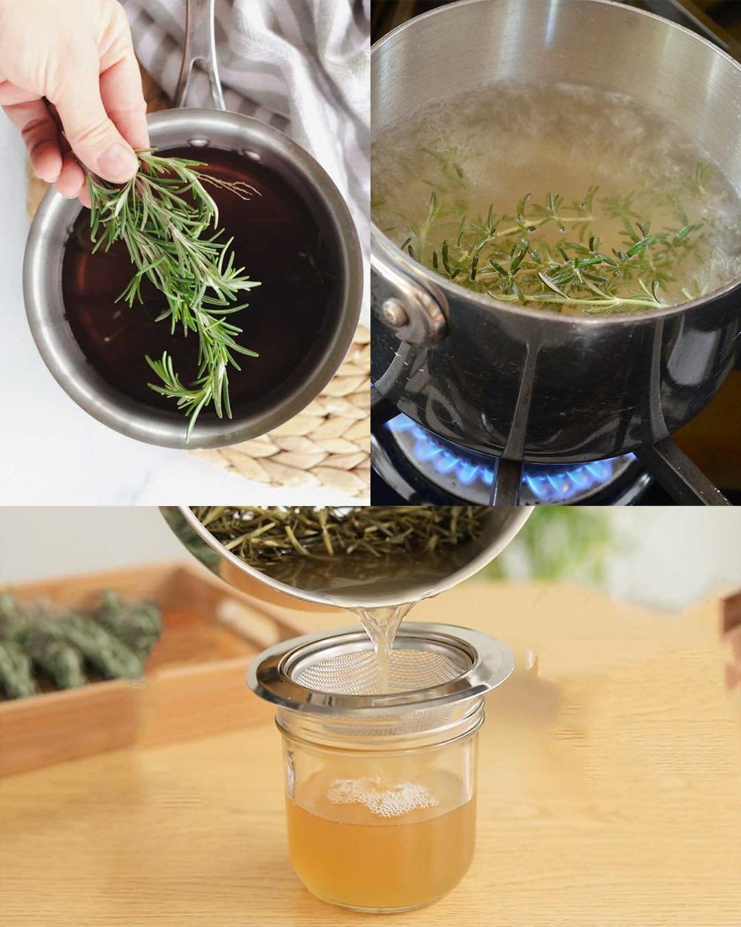 - Let the rosemary water cool after boiling.