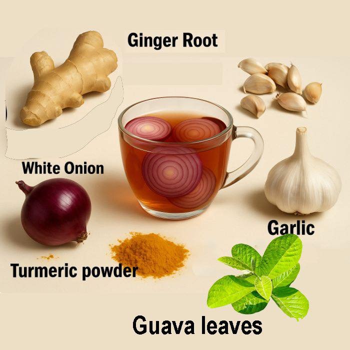 In a world full of processed food and environmental toxins, our bodies constantly crave natural remedies that heal, energize, and protect. One such simple yet powerful solution is a herbal tea made with garlic 🧄, turmeric, onion 🧅, ginger , cinnamon, and guava leaves 🍃.